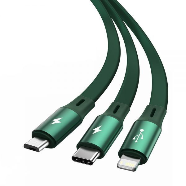 Baseus Bright Mirror One-for-three Retractable Data Cable Type-C to M+L+C 1.2m 100W Green (CAMLC-AMJ06)