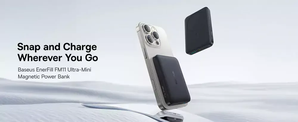 The Baseus EnerFill FM11 combines a high-density 10,000mAh battery with advanced magnetic technology. Whether you’re commuting, traveling, or working remotely, this power bank snaps directly onto your phone for effortless wireless charging or provides a high-speed wired boost via USB-C.