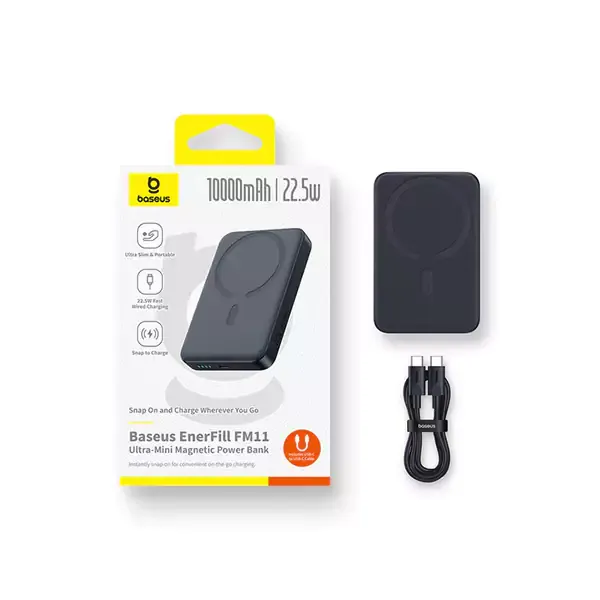 The Baseus EnerFill FM11 combines a high-density 10,000mAh battery with advanced magnetic technology. Whether you’re commuting, traveling, or working remotely, this power bank snaps directly onto your phone for effortless wireless charging or provides a high-speed wired boost via USB-C.