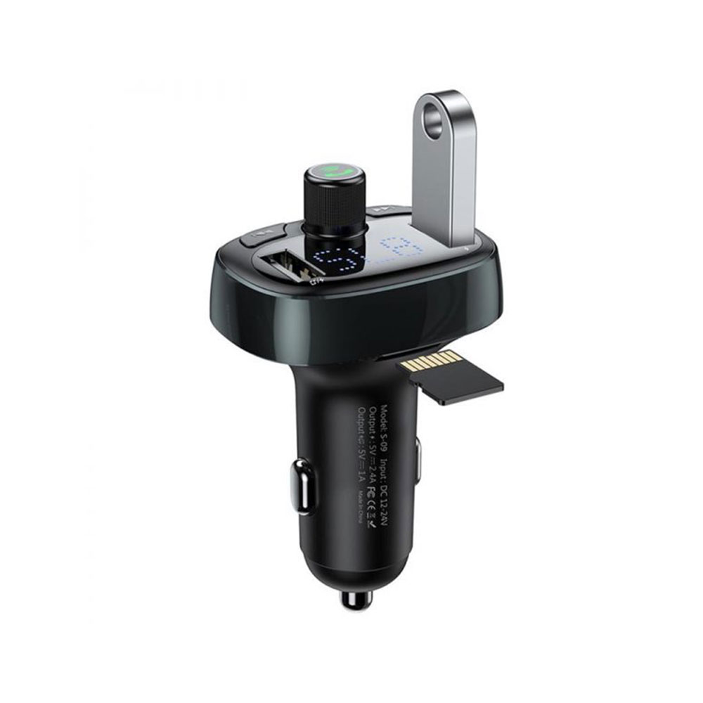 Baseus S-09 T-Typed Dual USB Bluetooth Car Charger With FM Transmitter- Black