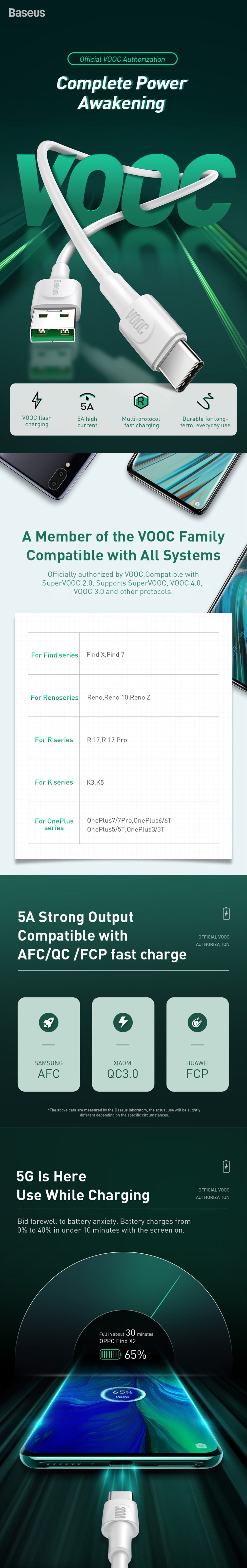 Baseus White Series VOOC Flash Charge Type C Data Cable 1M
