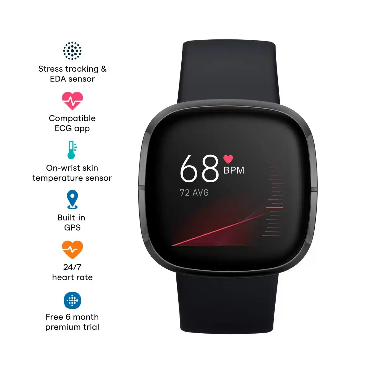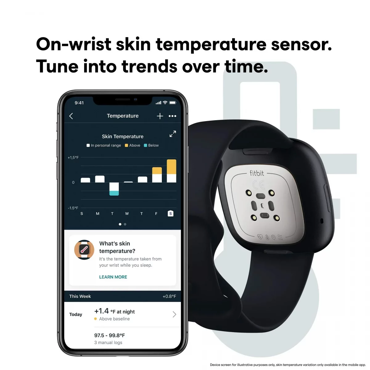 The Sense is equipped with advanced sensors for holistic health tracking: