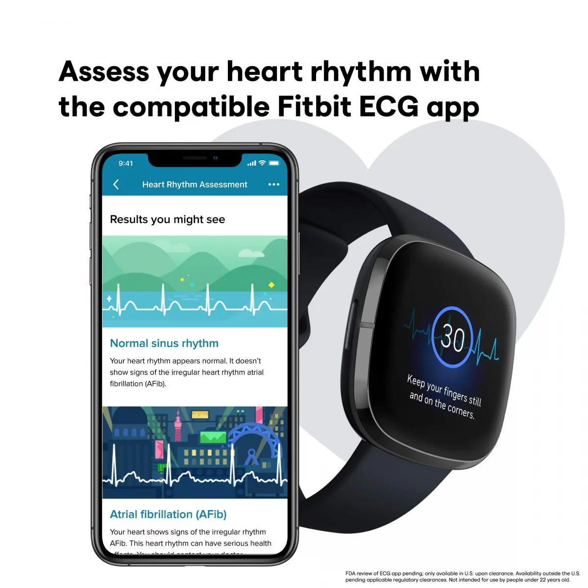 • ECG App (Electrocardiogram): Allows you to assess your heart rhythm for signs of Atrial Fibrillation (AFib) and share results with your doctor.