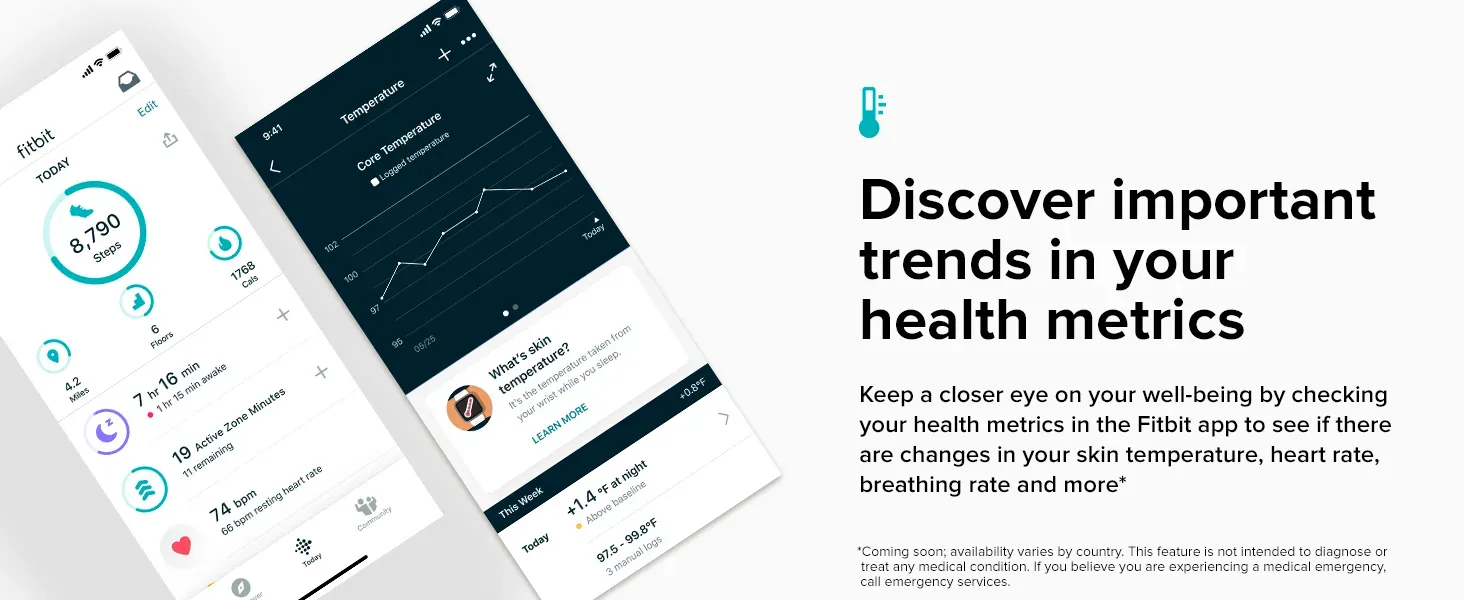 • Skin Temperature Sensor: Tracks changes in your skin temperature each night to help you understand potential changes in your wellness.