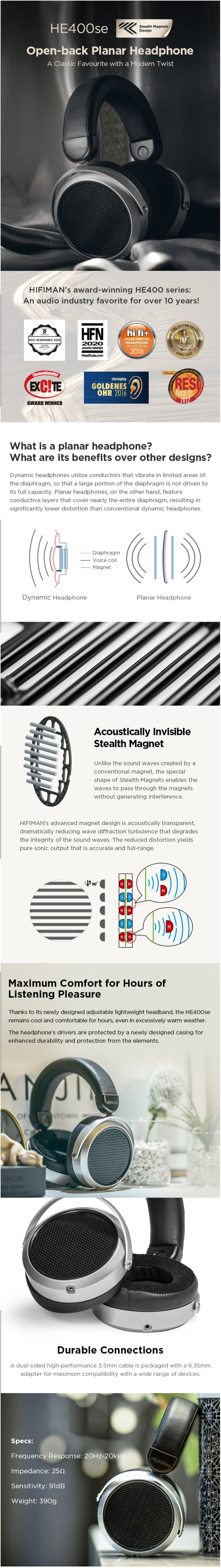 • Maximum Comfort for Hours of Listening Pleasure Thanks to its newly designed adjustable lightweight headband, the HE400se remains cool and comfortable for hours, even in excessively warm weather.