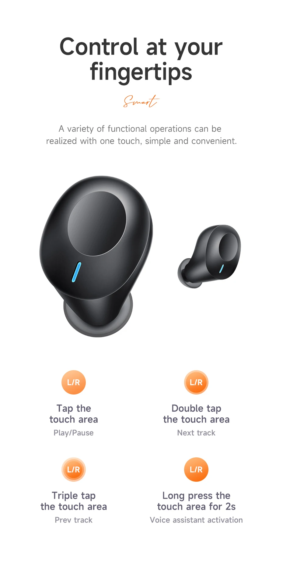 • Battery capacity: charging case 300mAh; Headset 40mAh