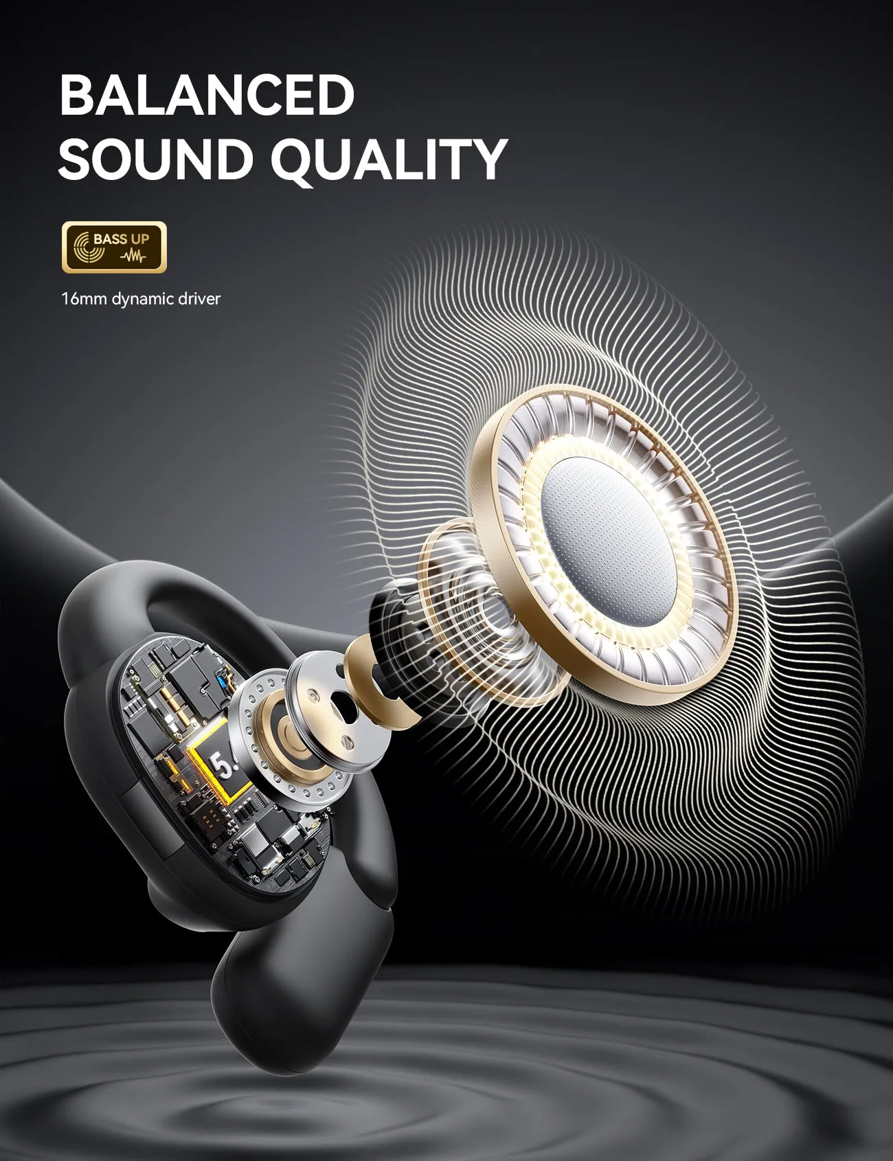 • Open-ear design for comfortable all-day wear and safe outdoor listening.