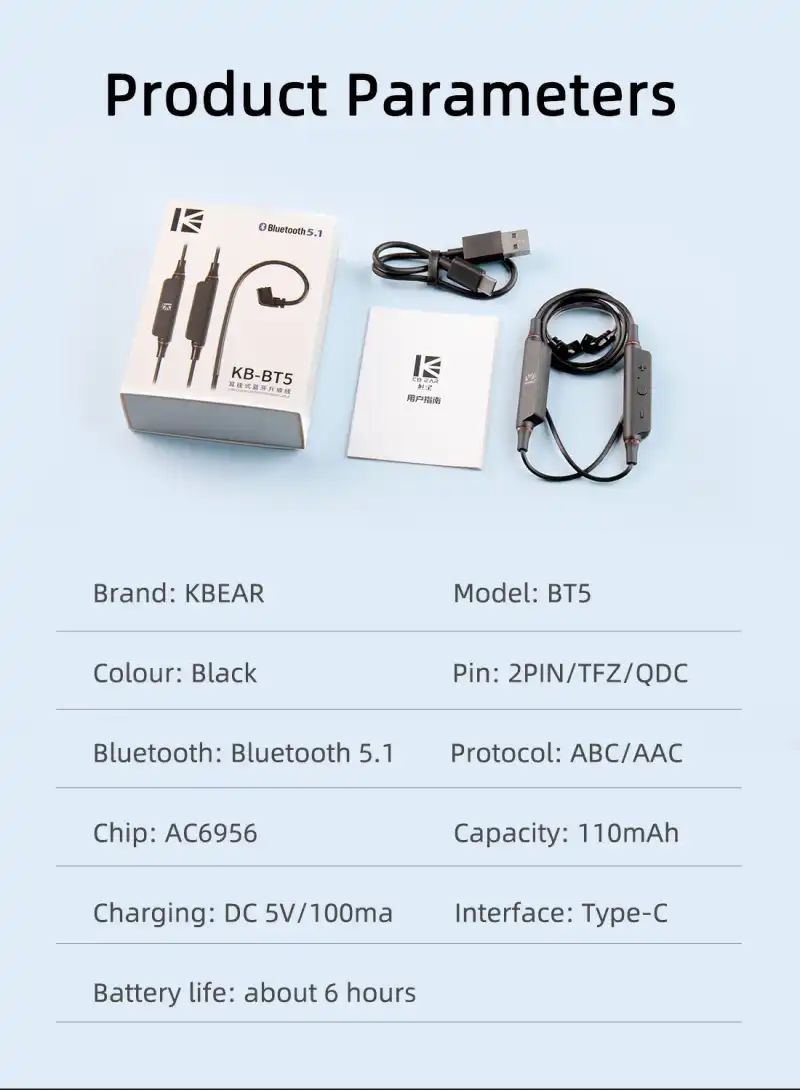 • Kbear Bluetooth | QDC Bluetooth|Qdc Bluetooth 5.1 Technology: Equipped with Bluetooth 5.1, ensuring stable and high-fidelity audio transmission.
