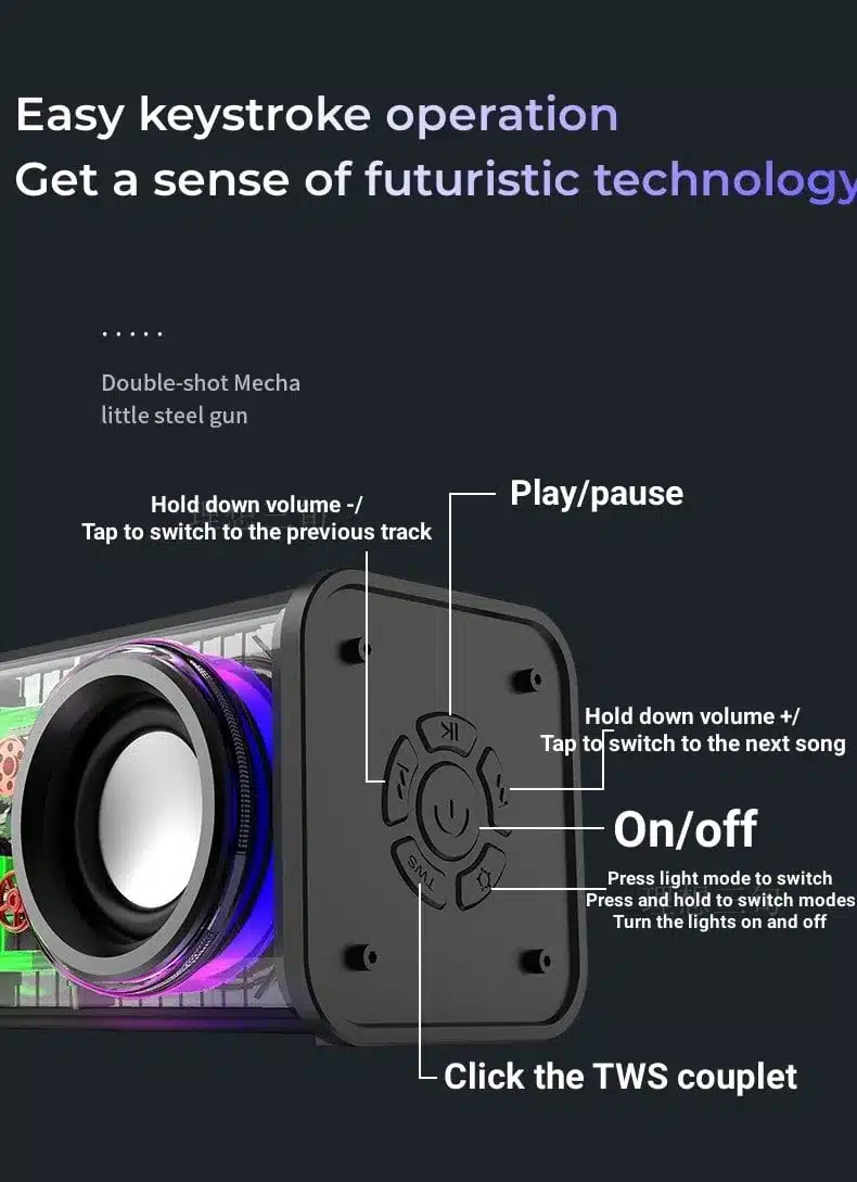 Mecha 10W Transparent RGB Colorful lights Bluetooth Speaker