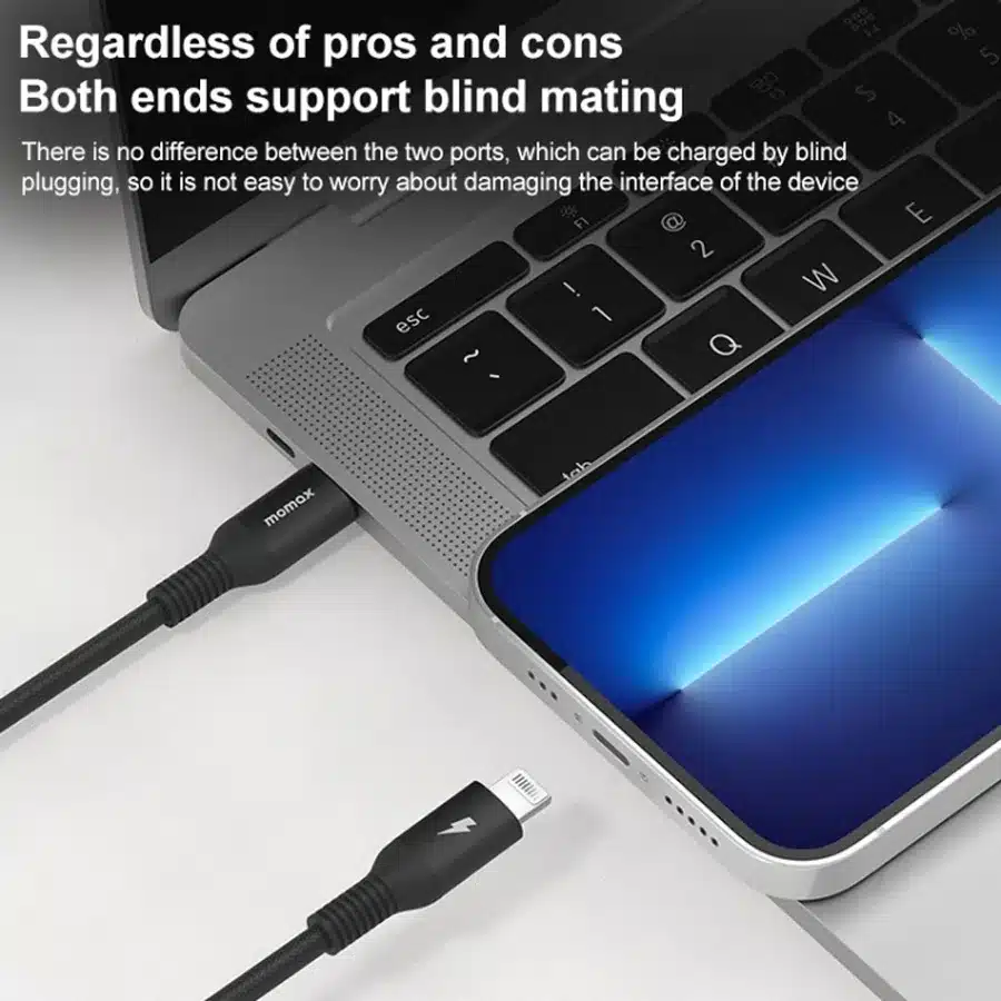 Power up your Apple devices with confidence and speed using the MOMAX DL51D Elite USB-C to Lightning Braided Cable 20W 1.2mThis premium, MFi certified cable guarantees a safe and reliable charging experience, free from frustrating error messages. With support for 20W Power Delivery, you can fast charge your iPhone to 50% in just 30 minutes, getting you back on the go in no time. The MOMAX DL51D is built for durability with a high-quality braided nylon exterior and a reinforced mesh tail that can withstand over 80,000 bends, ensuring a long lifespan. Its tangle-free design and sleek aluminum alloy connectors make it a perfect everyday companion for your charging and data transfer needs. Available only on Penguin.com.bd