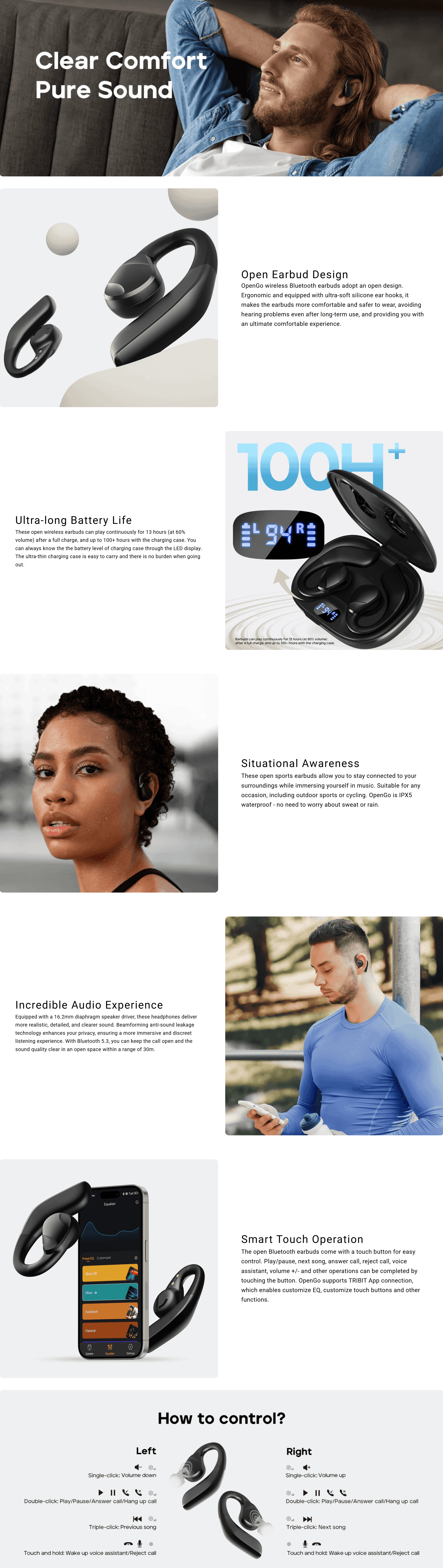 TRIBIT OpenGo Open-Ear Earbuds