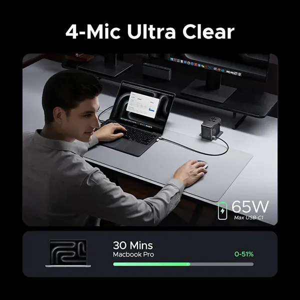65W GaN Fast Charging: Experience lightning-fast speeds with PD 3.0 and PPS 45W support. It provides enough juice to fast-charge laptops and tablets without the heat of traditional chargers.