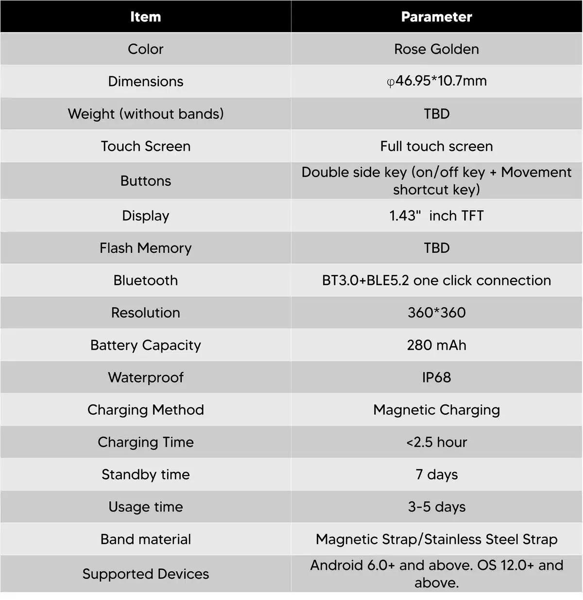 • 1.43″ Large HD TFT Display 360*360 Pixel